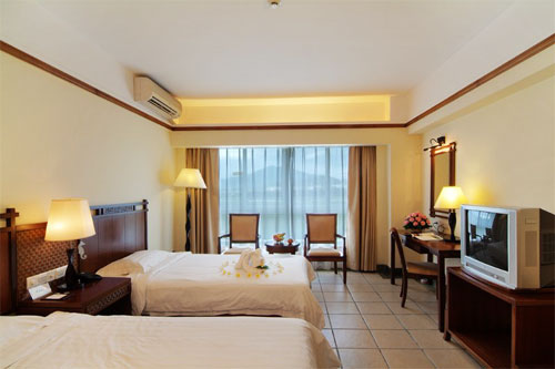 三亞天福源度假酒店(原天福源海濱溫泉度假中心)是由加拿大建筑與景觀事務(wù)所完成總體設(shè)計(jì),由海南大禹投資開(kāi)發(fā)有限公司投資興建的大型度假酒店。三亞天福源度假酒店由專(zhuān)業(yè)的物業(yè)管理公司暨三亞天福源海濱溫泉度假中心有限公司負(fù)責(zé)經(jīng)營(yíng)管理,位于美麗的三亞灣海坡開(kāi)發(fā)區(qū),椰林、沙灘、藍(lán)天、碧海,給您一個(gè)舒適的度假環(huán)境。三亞天福源度假酒店占地面積3萬(wàn)余平方米,擁有各式風(fēng)格的客房,各類(lèi)設(shè)施配套完備,擁有中、西餐廳,風(fēng)味特色餐廳、各式咖啡廳、酒吧、夜總會(huì)、桑拿中心、商場(chǎng)、書(shū)店、精品店、商務(wù)中心、美容美發(fā)中心、兒童樂(lè)園、棋牌室、健身房、網(wǎng)吧等設(shè)施一應(yīng)俱全。三亞天福源度假酒店所處位置交通便利,各大景點(diǎn)環(huán)繞周?chē),距離三亞鳳凰機(jī)場(chǎng)僅10分鐘車(chē)程,距天涯海角、西島海上游樂(lè)中心僅5分鐘車(chē)程,距南山文化苑僅20分鐘車(chē)程,可最大限度的方便賓客觀光旅游.三亞天福源度假酒店提供的會(huì)議設(shè)施完備,有大、中、小各種類(lèi)型會(huì)議室,可同時(shí)接納400人次的大型會(huì)議,如:多功能會(huì)議中心、獨(dú)立會(huì)議室、宴席招待廳、貴賓休息室、音樂(lè)茶座吧等。還擁有目前三亞最大的溫泉泳池,面積2200多平方米,可滿足所有入住賓客的需要。